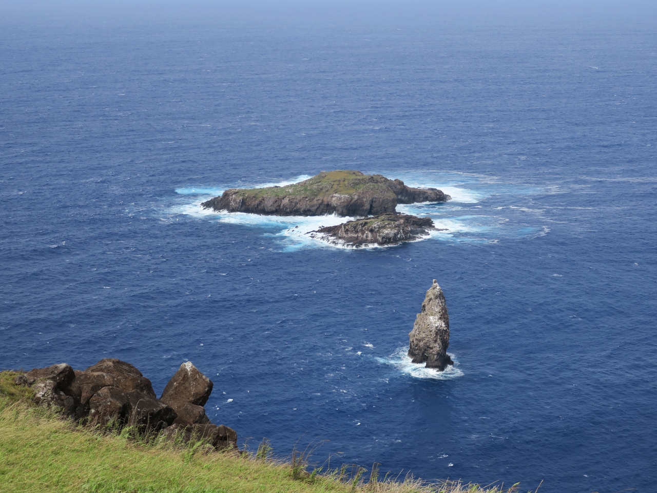 オロンゴ儀式村は、島の長を決めるの儀式が行われた村です。鳥人儀礼と呼ばれ、280Mの崖を下り、1500m先の島へ、泳ぎ、その年、最初の渡り鳥の卵を持ち帰った者の村の長が、島の長じゃとなったそうです。ここに立って、島を見下ろしていると、当時の島民たちの興奮がよみがえってくるようです。
