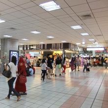 日曜日の昼に行きましたが、構内はとても混雑していました。外国人の観光客もかなり多そう。昼食に弁当を買おうと見て回りましたが、なかなか思うように動けないほどの賑わいで、中には床にレジャーシートを広げてピクニックのような状態になっているグループも。あまりに酷いのは係員に注意されていましたが。改札を通った後の待合所は比較的空いていて、椅子に座って電車を待つことができました。