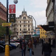 ヴァーツラフ広場からの半分ほどは歩行者専用の通りで