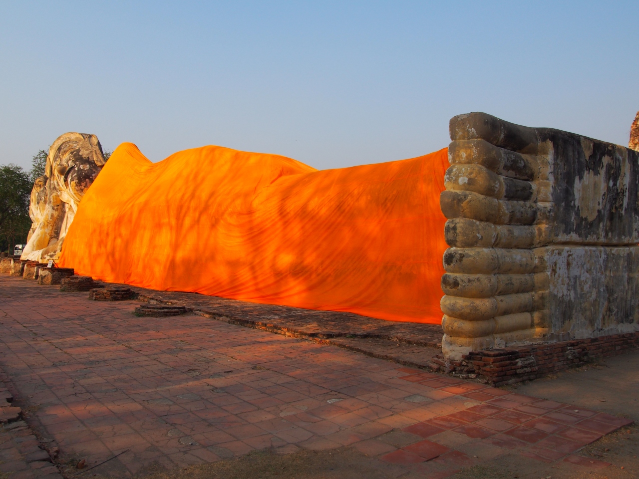 アユタヤツアーの最後に訪れたので少し感動がありませんでしたが、夕陽に照らされてきれいに輝いてました。仏さんは石なので後ろの部分から葉っぱが出てました。ど根性葉っぱ見たいで生命力があるんだな~と思いました。ここからバンコクに戻るのでトイレに行きましたが及第点でした。