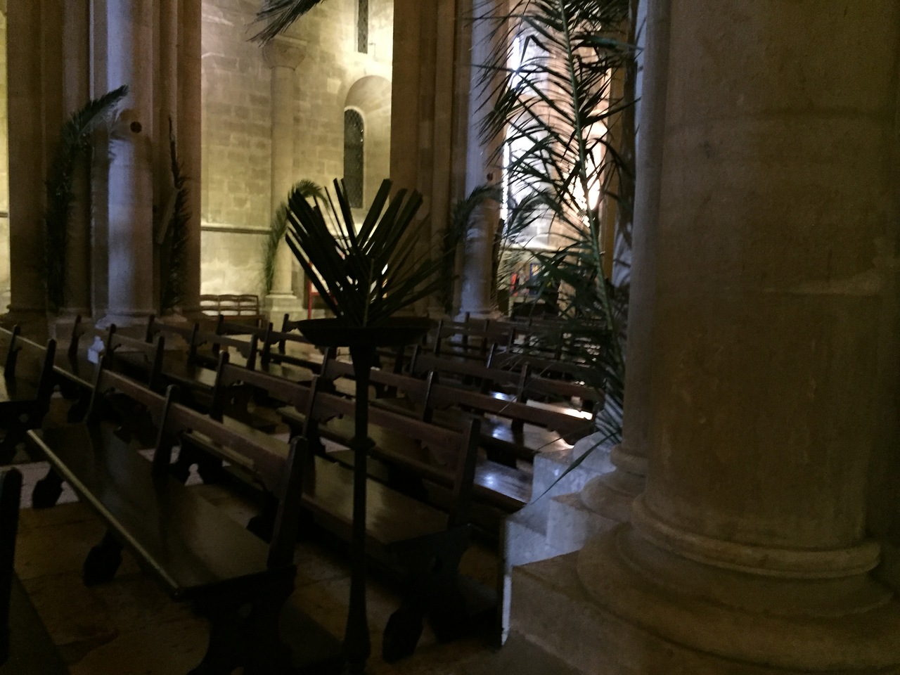 思っていたより小さなカテドラルでした。聖週間の前に訪れたのですが、聖堂内では南国の植物の飾り付けをしていました。