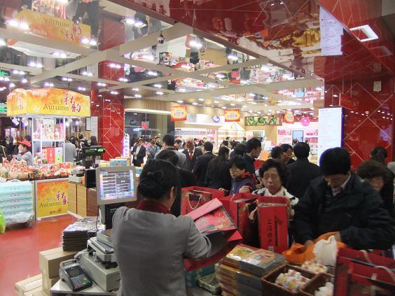 南京東路沿いにあり、なかなかの賑わい振りでした。店内は明るく清潔な感じで、中国のお土産になるような食料品が並んでいます。3階のフードコートには南翔饅頭店や小楊生煎などの名の通った店舗も入っており、色々と食べ比べができて便利だと思いました。