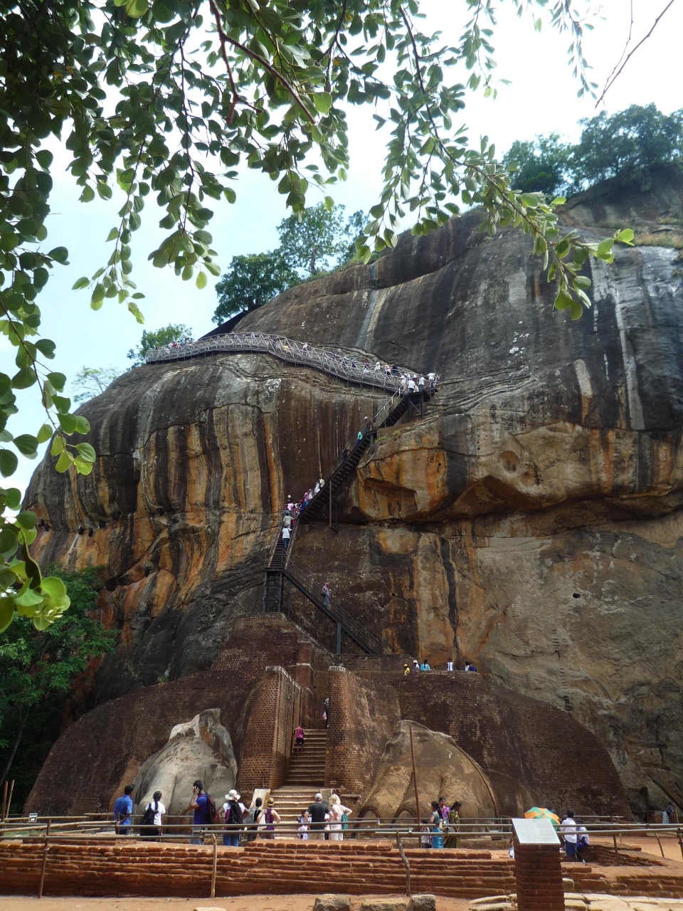 シギリヤロックの最後の岩登りの入り口階段の左右に足があります。向かって左の足のほうが綺麗で写真撮影には向いています。