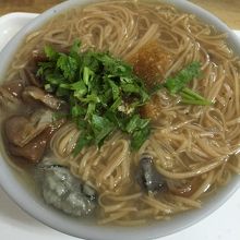 週末の夕方に店頭八人くらいの行列ができ、人気店です。持ち帰りはほとんどで、すぐ席を見つけてよかった。だが、店外のイートスペースばかり、エアコンがなく、暑い。唯一の店内席をみつけて、ラッキー。小で55どるで、決してやすくないが、具のかきともつもたっぷりのせて、出しもいいし、マイルドで、テーブルにおいてる台灣バージルをのせて、たべるとまたあじの変化をたのしむ。
