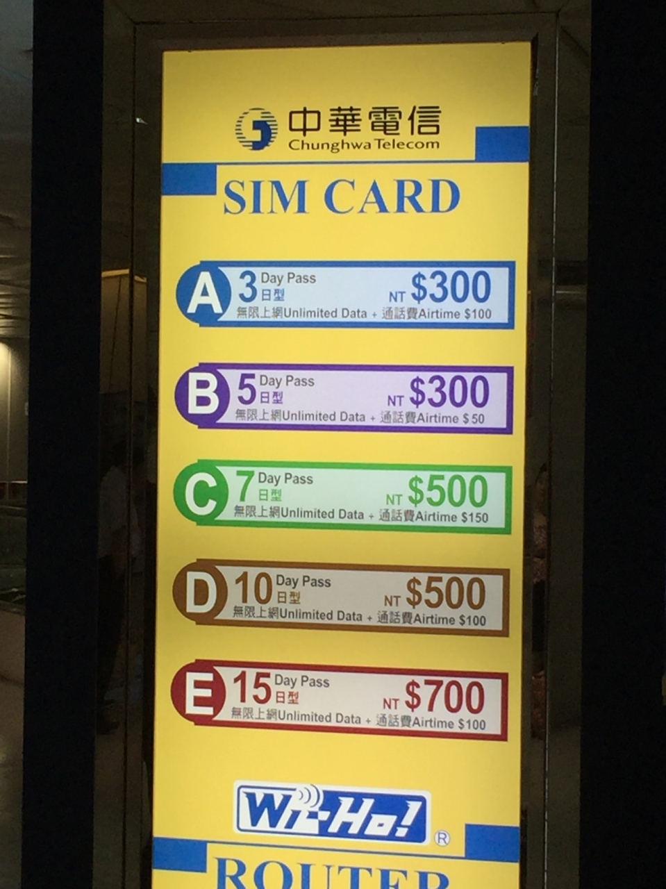 今回は桃園第二空港を利用しました。入国審査のカウンターの前に3社のモバイル会社のがあり、料金プランはほぼ同じだけど、中華電信は電波が一番強いといわれて、カウンターにスタッフ一人だけで、十人以上の行列も。それと、1日のsimカードはいつの間になくなって、ルーターを借りる以外は対応しないようです。