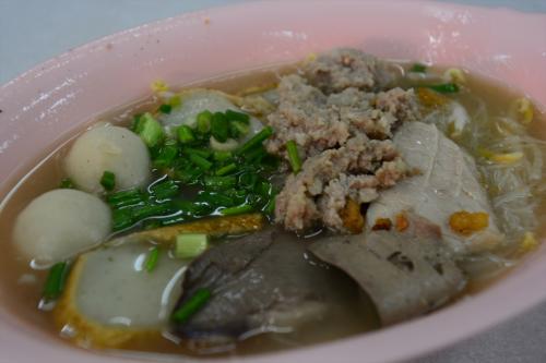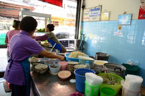 プロンポン駅から歩いてすぐです。タイ王室御用達とネットで読んで、気になったので行ってみました。見かけは普通の食堂で、ここが王室御用達?とちょっと疑いましたが、米粉とクエティアオを1杯ずつ注文。つみれや豚肉がのっていて、見かけも普通ですが、確かにおいしかったです。アイスティーとアイスコーヒーも頼んで、全部で100バーツでした。