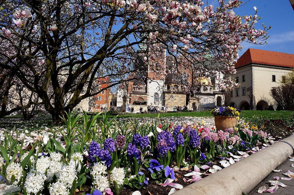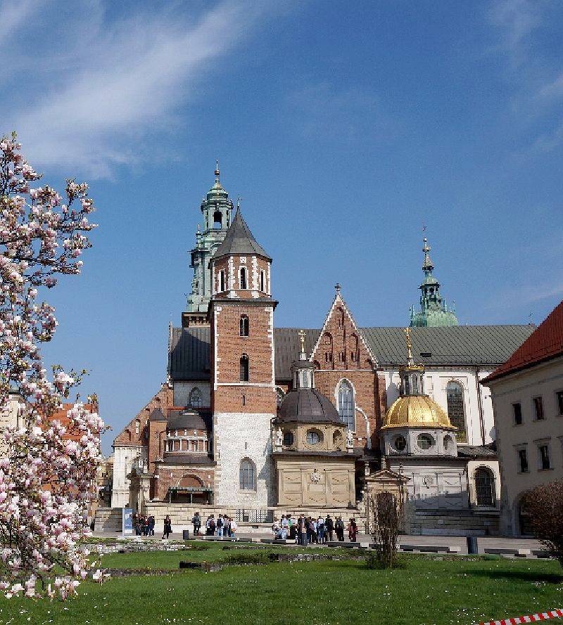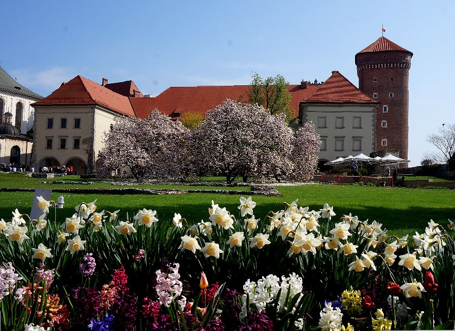 2016年4月の中旬に訪れました。王宮内のチケットを購入する際に簡単な英語表示しかなかったので、どのチケットを選んだらいいか戸惑い、職員にイライラされました。事前によく見学コースを調べてから、出かけることをお勧めします。何が見たいのかと質問されたので、お部屋をガイドなしで見たいということと、ノーマルのコースをと伝えると一人36ズルチ(1080円位)のチケットを渡され、9時25分までに指定の入り口に行くように言われました。10分の余裕しかなかったので、集合場所に急ぎました。手荷物やコートのセキュリティチェックを受けてから、他の団体客と一緒に入城。ポーランド語のガイドだったので、私達ともう一組の個人客は団体を待たずに自由に見学できました。結局私達が選んだコースは王宮内に展示された歴代君主の肖像画とフランドル産の織物、調度品を見るコースでした(内部は撮影禁止)。後で王族の個室を見るコースだけはガイド付きではないと見れないことを知った次第です。見学後お城の庭に出てみると、春の花が咲いていて、バックのお城の風景は絵になる風景で、内部の見学よりもこちらの方が印象に残りました。