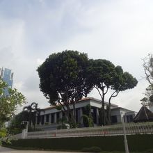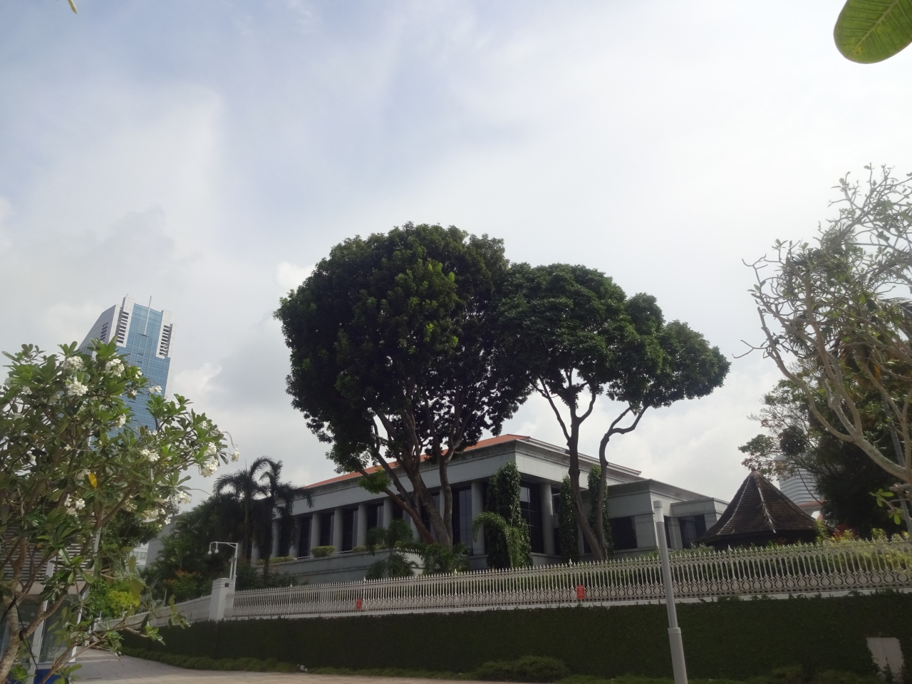 私たちは一度は裏手から見て、あとからは正面からも眺めたが、正面には樹木が植えられ、南の国らしさが感じられた。