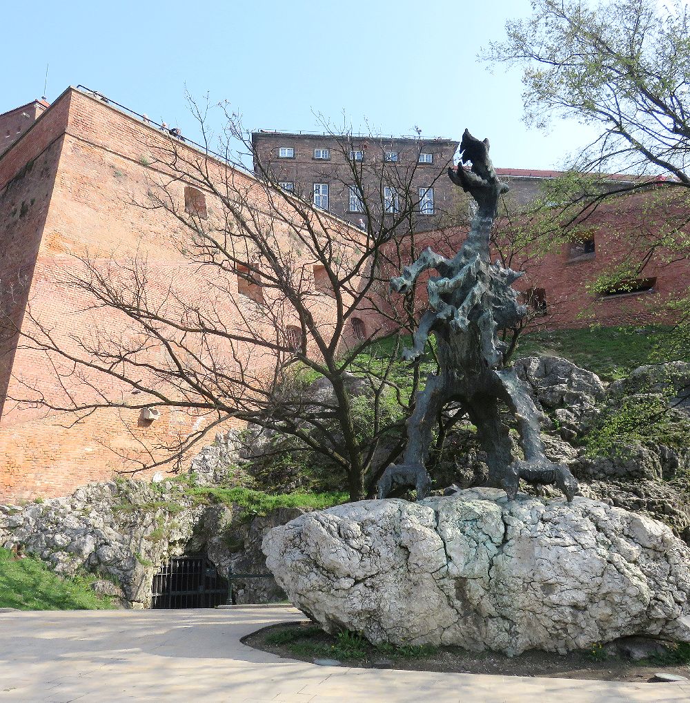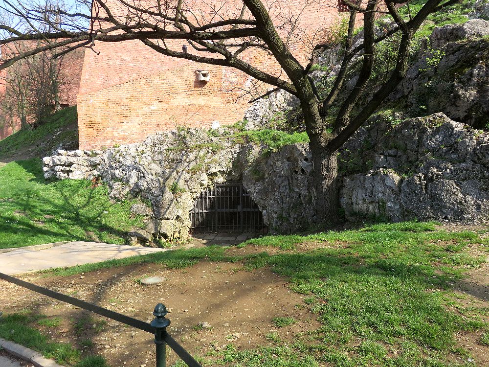ヴァヴェル城の地下からヴィスワ川の河畔へ通じている石灰石の洞窟。若い女性や動物を生贄に差しだし、王は、娘も生贄に差しださなければならない状況になり、竜を倒したものに王女と結婚させると約束。最後に竜に硫黄を詰めた子羊を食べさせて退治した貧しい職人の若者が王女と結婚できたという伝説があり、その伝説の竜のすみかだったといわれている。4月から11月の間公開されているという情報もあるが、城の裏手のヴィスワ川の岸にある出口を4月に訪れた時は施錠されていた。城のどこに入り口があるかは確認できなかったが、城の井戸が入り口になっているらしい。洞窟のうちの一部分のみ公開されているという。出口のそばには小さな竜の像が立っていて、突然口から火を噴いては見学に来ていた子供たちを驚かせていた。像のそばには竜のぬいくるみなどの土産物を売る露店も出ていた。洞窟に入ってみたい人は公開時期を調べてから訪れるといいだろう。