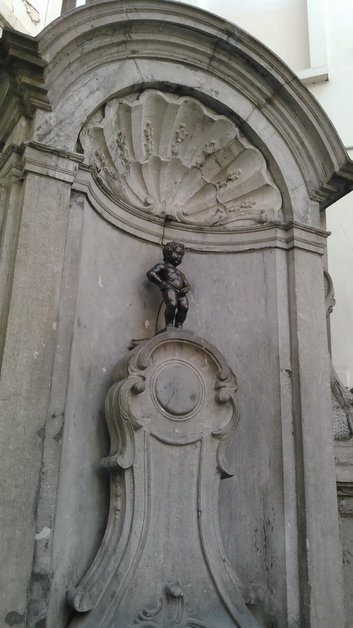 ツアーでお散歩しました。人だかりがしているところへ行き、前に回るとやっと見えました。柵の中にあり、思いのほか小さかったです。洋服を着てなくて裸んぼうでした。この後、洋服だけを展示してある美術館に行き見てきました。