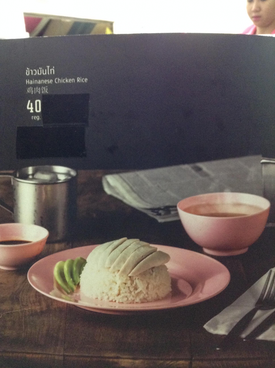 注文はもちろん40Bカオマンガイ。スープ付きです。別でドリンクとサラダ的なものはどうするか聞かれますので、25Bのミルクティーを頼みました。これはカオマンガイとは別会計です。