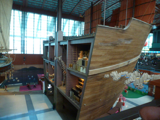 セントーサにある水族館です。入口を入ると大きな船があり、その船の中に、昔は運んだ物資がどのようになって運ばれたか、再現してありました。水族館的には日本にも同じような展示がありますので、特に変わったことはありませんでしたが、この入口の船の展示が興味があって、昔から貿易が盛んだったのかな・・・と感じました。