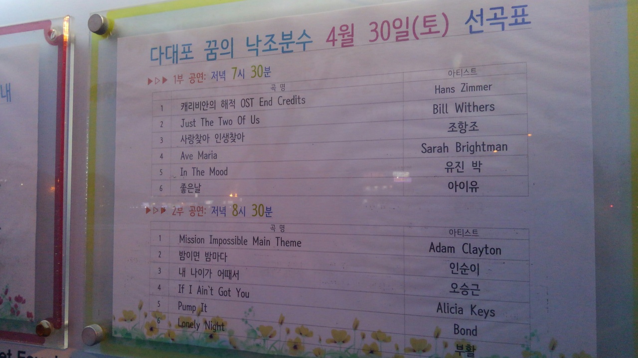 6曲ぐらいの音楽に合わせ、噴水と光によるショーが繰り広げられるのですが、選曲も洋楽ポップス、オールディーズ、韓国の歌謡曲、K-POP、クラシック、映画音楽とバランスがよく、噴水も迫力があり、これまでアジア各地で見た水と光と音楽ショーの中でいちばん好きです。