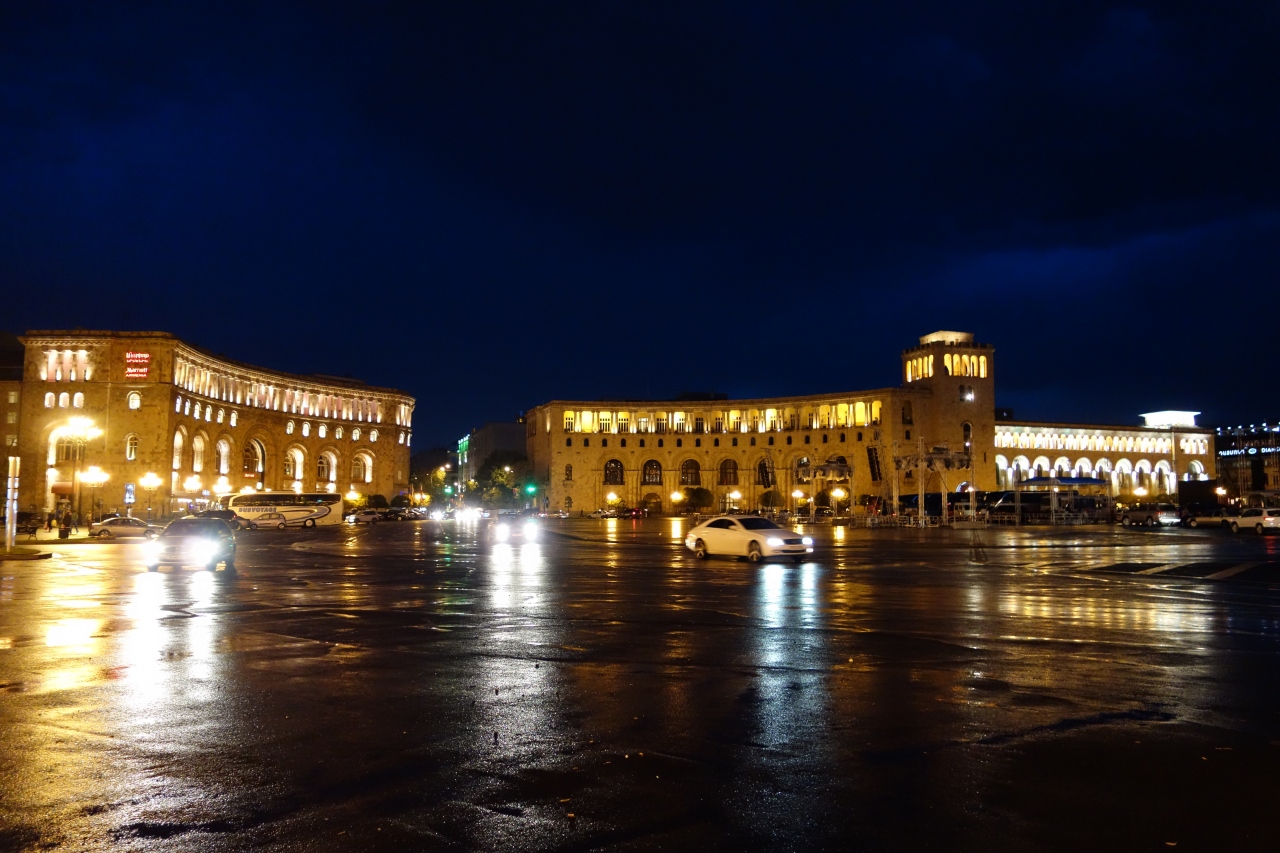 夕方から夜にかけては、建物のバラ色と街灯の黄色がとてもきれいな夜景を作り出していて、ある意味、街中の絶景と言えるような場所です。