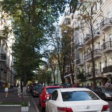 左側の道がDesyatynna通りで、まっすぐ歩いていくと聖ミハイルの黄金ドーム修道院に