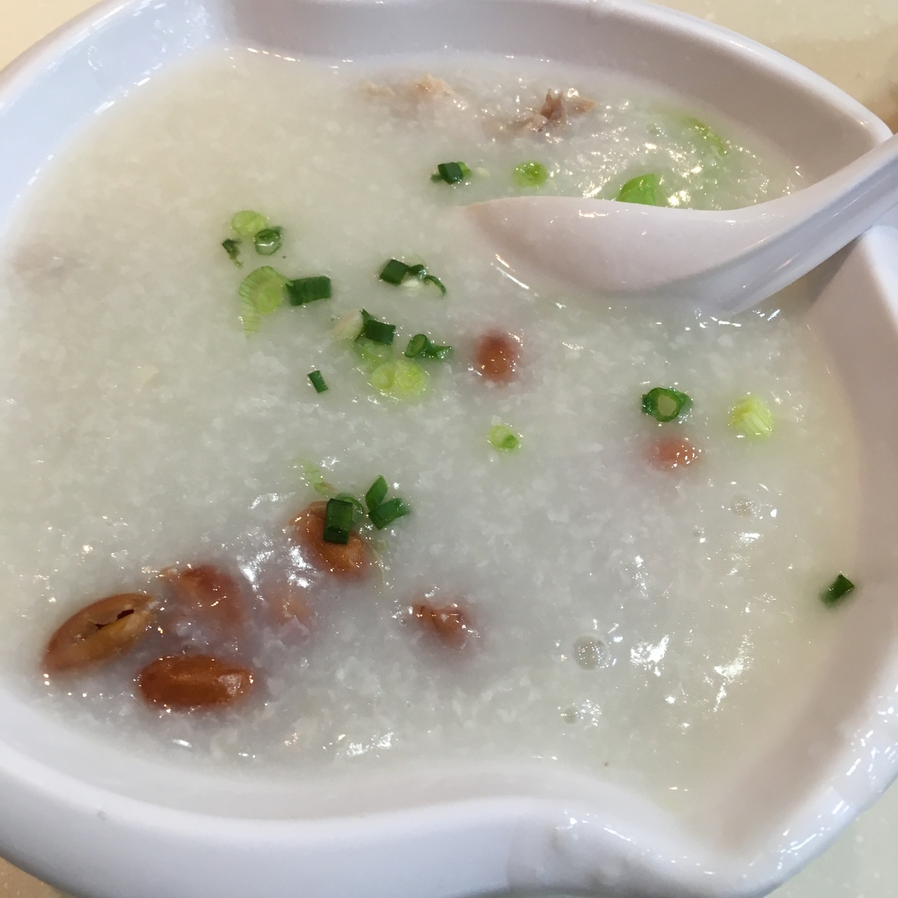 朝食は、油条と豆乳のセットか、お粥というのが定番だが、二日酔い気味なので、お粥。