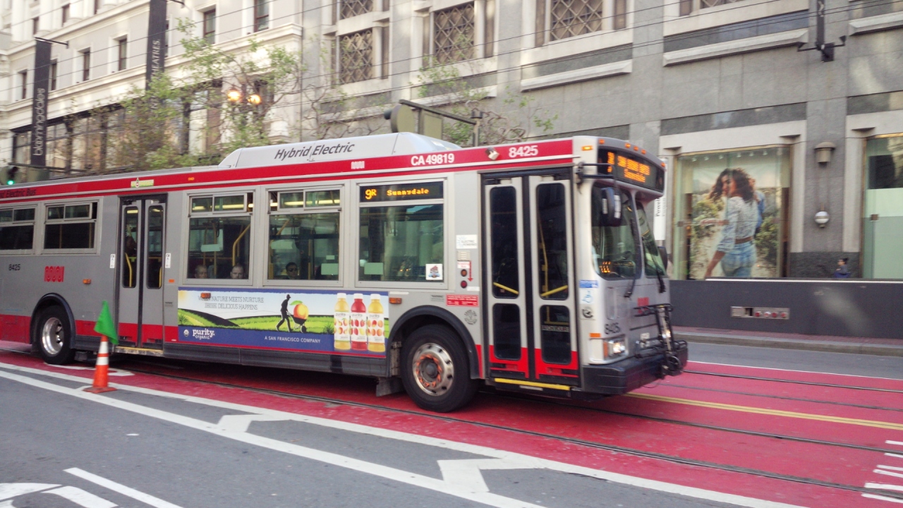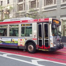 サンフランシスコでバスと言えば、パンタグラフが付いているバスが