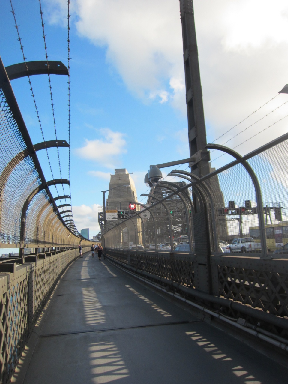 飛行機の乗り換えの関係で行ったシドニーだったのであまり事前に調べていなかったのですが、オペラハウスから見える橋が雰囲気があり、絵になるブリッジです。時間があったので、橋を歩いてみましたが、夕方は地元の人のジョギングコースになっていて沢山の人が走っていました。歩いているうちに反対側まで行きましたが、片道20分くらいだったかな?橋からオペラハウスの海に面した部分が見えるので面白かったです。