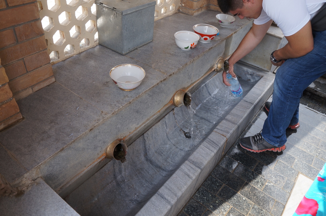 霊廟のある丘からの眺めはとても良く、また麓には聖水が湧いており地元の人が組む姿が見られます。