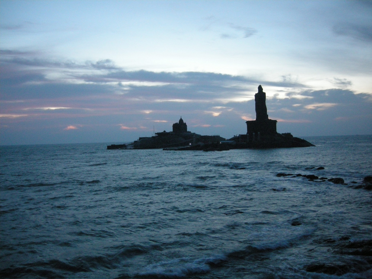 片方には赤っぽい建物が建っています。19世紀末にヒンドゥー教の宗教家ヴィヴェーカーナンダが訪れたことで有名な岩だそうです。隣の岩にはティルヴァッルヴァルという