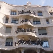 実業家ペレ・ミラの住宅としてガウディが設計したカサミラ。曲線が美しい建物です。入場料が高かったので、入場せず。外から楽しみました。