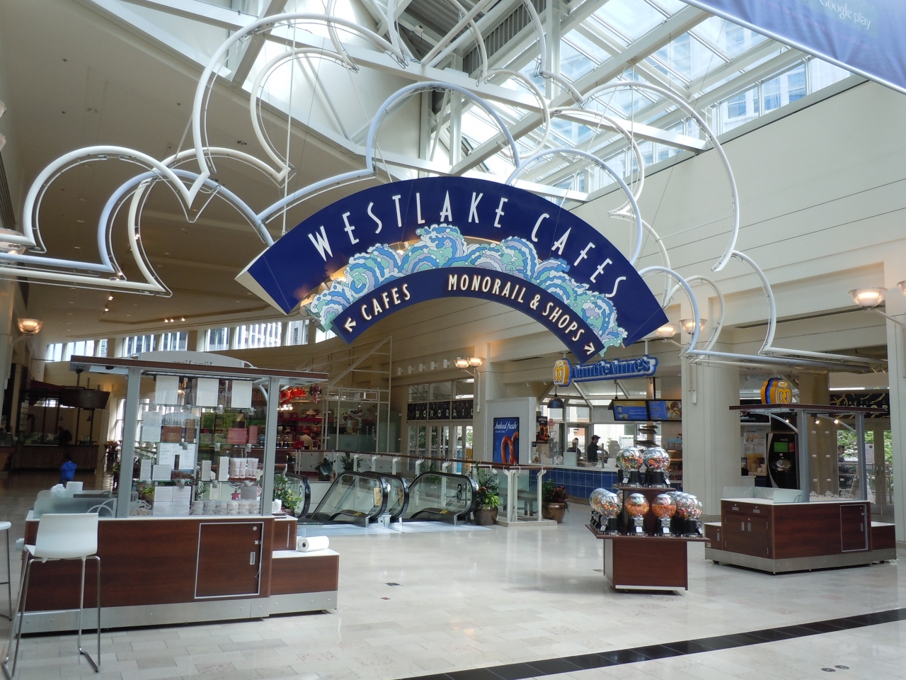 ライトレール駅の上、メイシーデパートとノードストームの間。