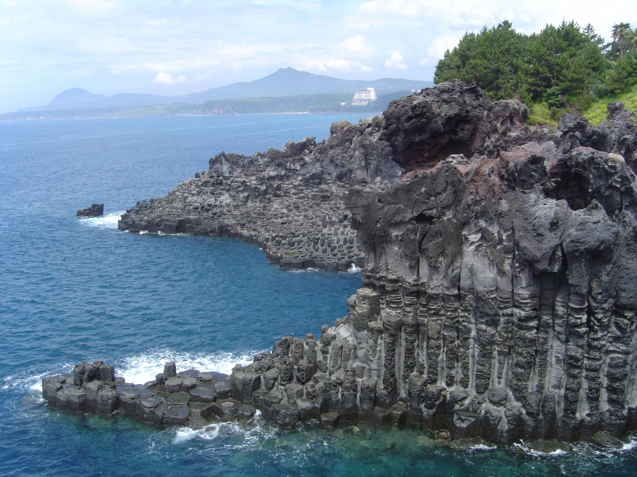 人が造ったかのような柱状の岩が海岸に連なっていて、天然記念物に指定されている。