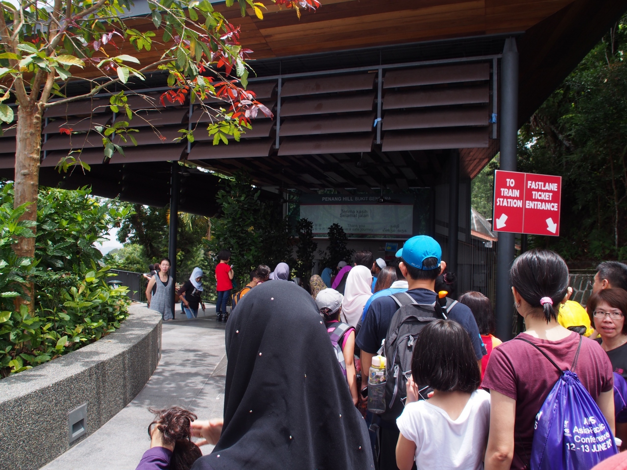 2016年4月30日に行きました。朝クアラルンプールを出発し、飛行機でペナンへ。そして空港から直接タクシーで向かいました。値段は44.7RM(ジョージタウンまでと同一料金)で、大体40分くらいでついたと思います。10時半くらいにつきましたが、土曜ともあって大混雑しており、1時間以上待ってようやくケーブルカーにのりました。景色はキレイですが、登った瞬間下りケーブルカー待ちの大行列・・・日帰りでクアラルンプールに戻らねばならず、ろくに見学もせずにすぐ下りの待ち列へ。結局往復の待ち時間で二時間以上時間を費やしてしまいました。なお、ディズニーのようにファストパスシステム(料金2倍の60RM。通常は一人30RM)があり、お金をケチらずにこっちにすればよかったと激しく後悔しました。ファストパスを買いたくないのであれば、平日または早い時間に行くことをお勧めします。