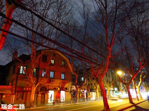 プラタナスの並木道が美しい通りで、通り沿いには、瑞金醫院や瑞金賓館、ややローカルな食堂が軒を連ねています。瑞金醫院あたりは人も車の往来も多いです。