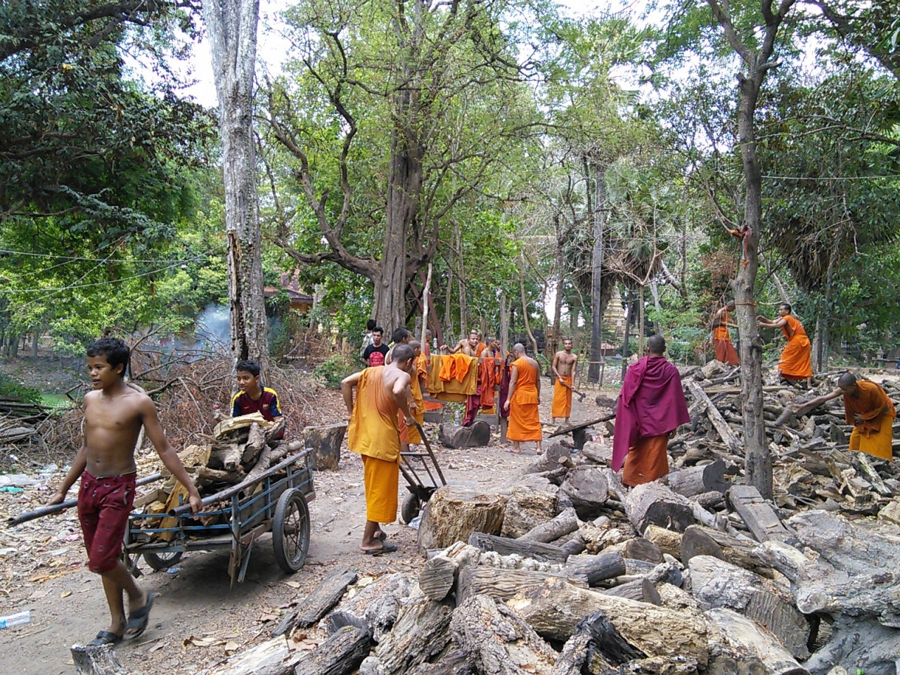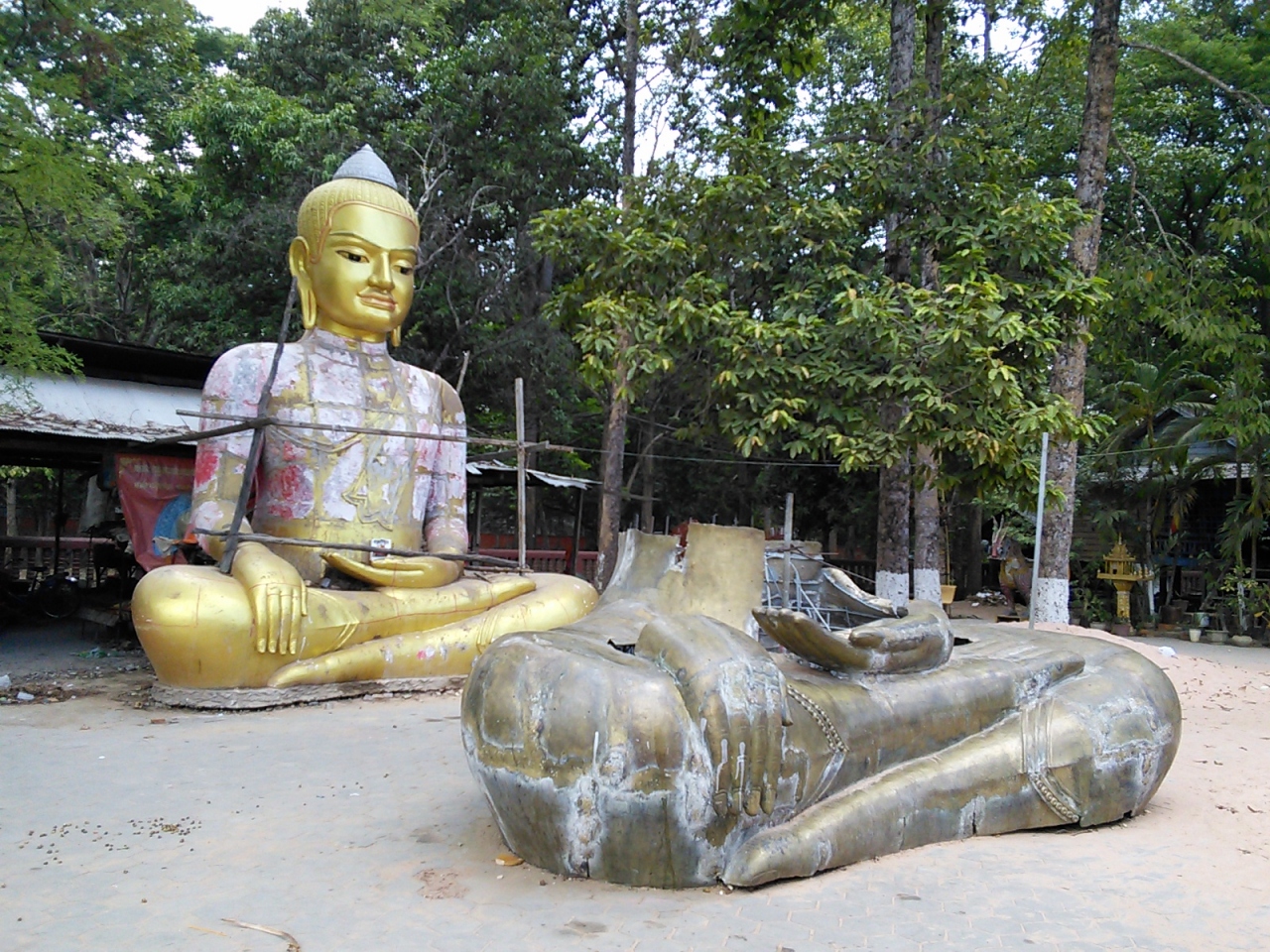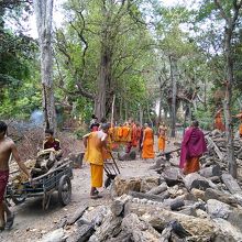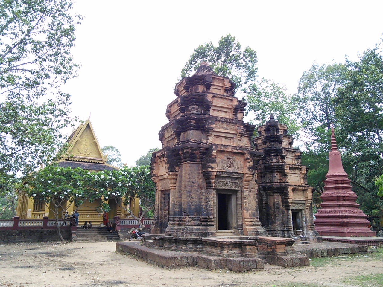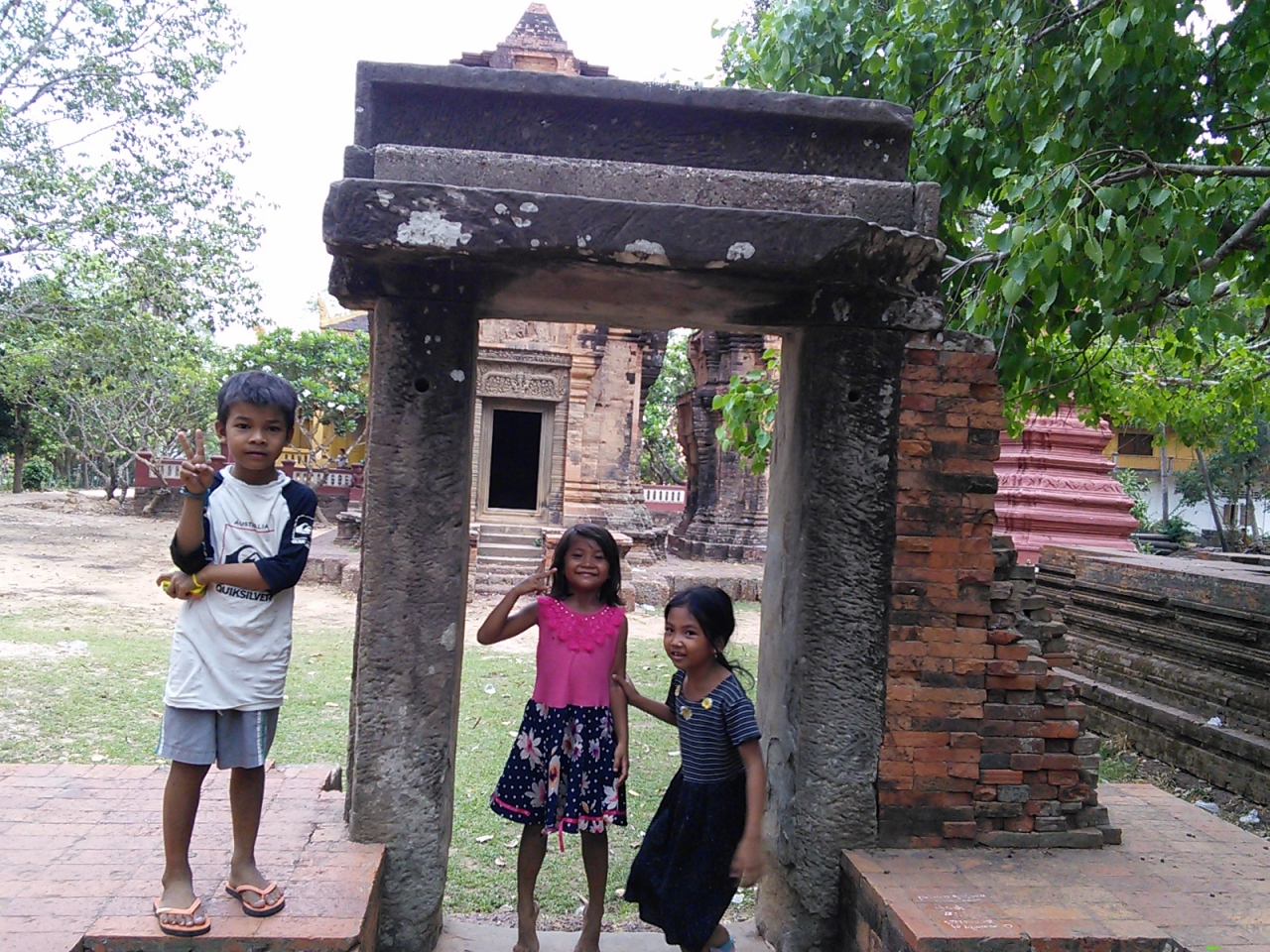 シェムリアップ川の東側はぐっとローカル度が高くなりますが、このお寺もそう。シェムリの中心街と比べると対照的でカンボジアの田舎町を思わせてくれます。いかにお寺が人々の生活の中に根差しているかを感じさせてくれます。すぐ隣りというかほぼ敷地内に小学校があり子供達の遊び場と化していたり、裏手にある住宅地への抜け道にも使われておりおっちゃんがバイクでブーンと通り過ぎたり、近所の方が家族でお参りに来ていたり…。とてものどかで時間がゆっくり流れています。