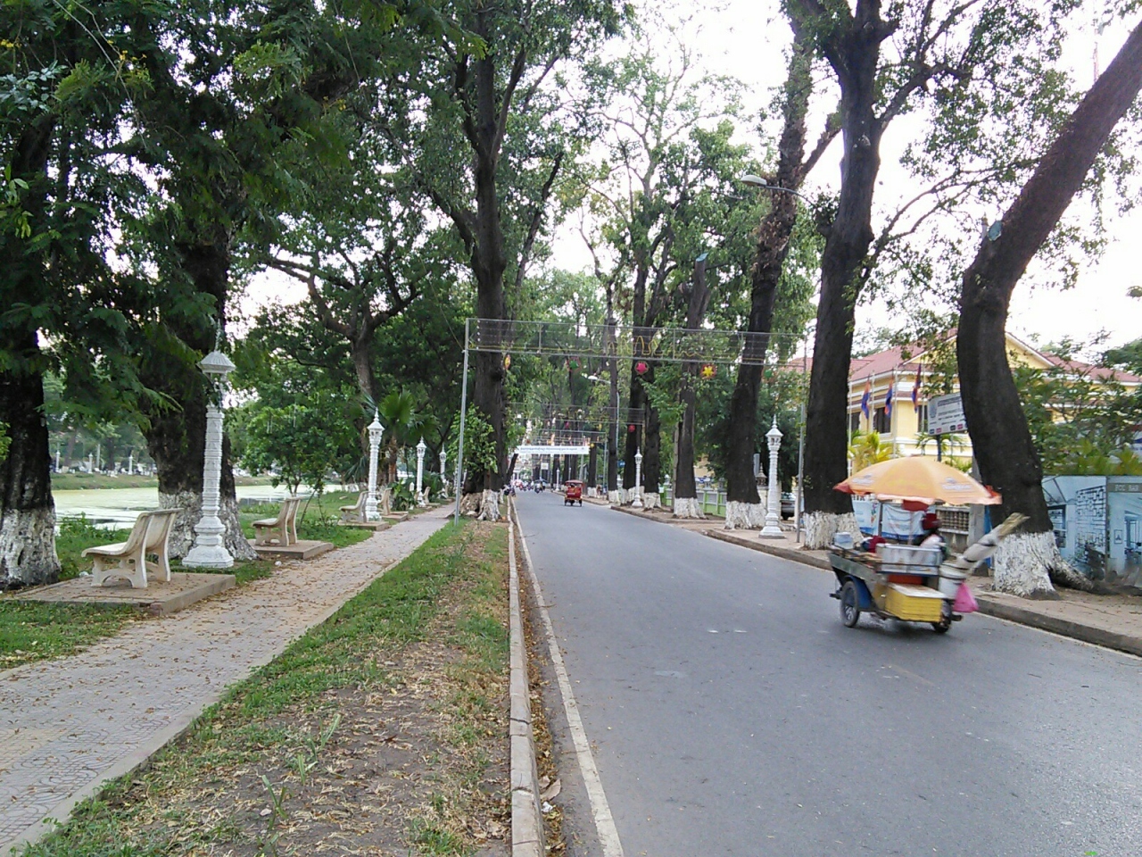 シェムリアップ川沿いにある落ち着いた通り。シヴォタ通りからやって来ると癒されます。川沿いにはベンチが設けられて大きな街路樹が日陰を作ってくれるので涼しく気持ちいいがいいです。通り沿いにはオールドマーケットやワット プリア プロム ラスなどがあるので観光の合間の休憩もできます。