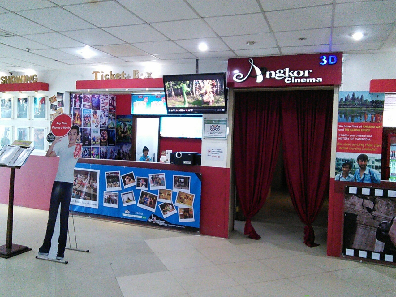 3階には映画館?があります。一見シネコン風ですが全く違います。12部屋ある個室スタイル。人数により料金か変わりますが1人で一部屋使うと10ドル(ドリンク付き)です。おそらくただのDVDでしょうが結構な数の中から選べます。もちろん日本語字幕はありません。