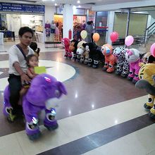 2階ロビーには動物型の走る遊具があります。7分間で1ドル、乗っているところを見ましたがなかなかのスピードが出ます。大人も利用できると言われましたがさすがに1人では乗れません。