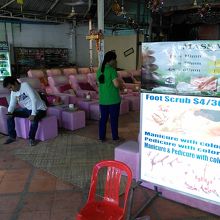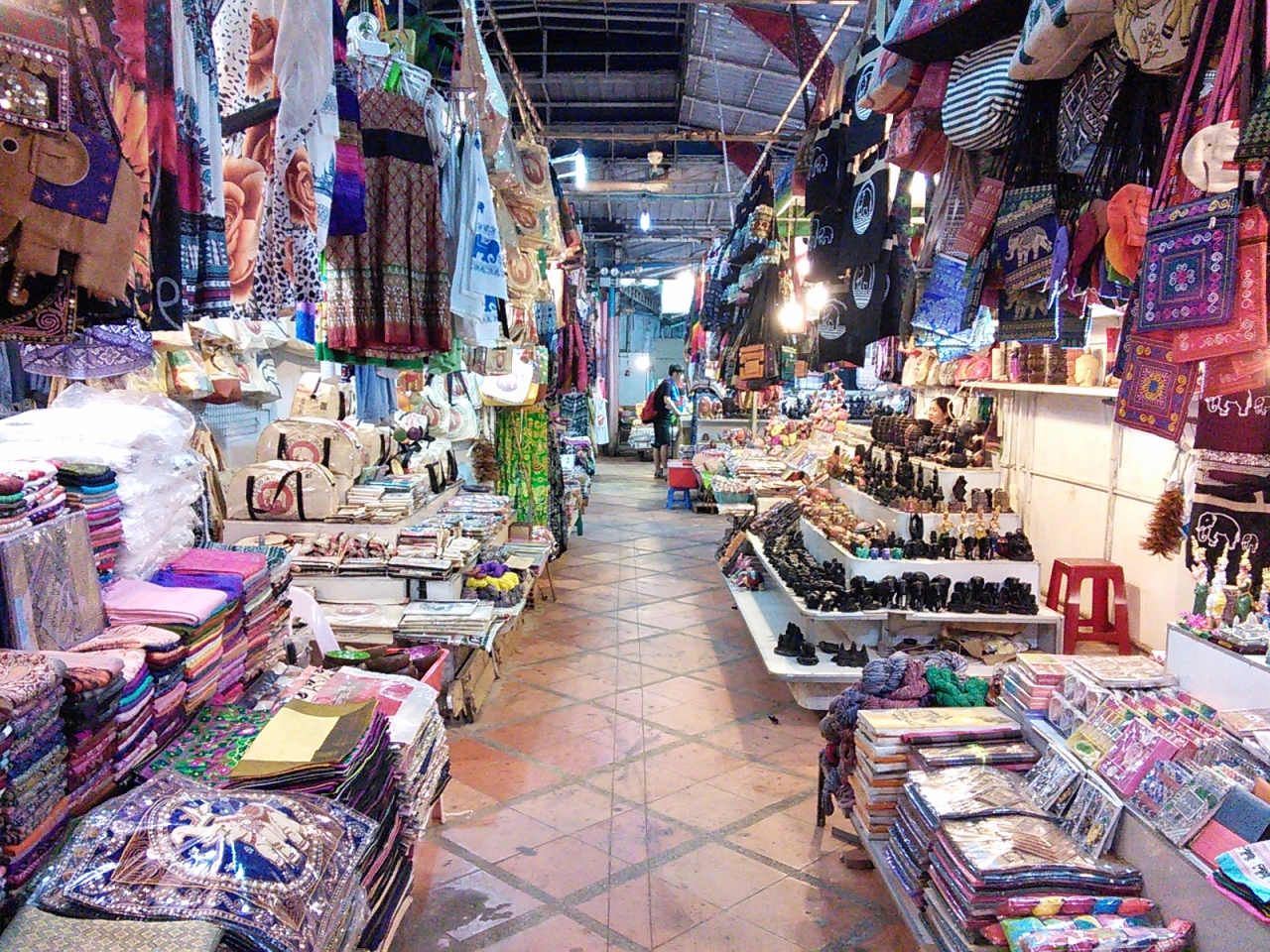 Tシャツにワンピ、スカーフ、サンダル、バッグ、アクセサリー、民芸チックな小物、アロマオイル、石鹸などなど…。いわゆるコテコテの観光客向けの土産物屋の集合体です。どこの国のどこの観光地でも売っているようなものばかりで特徴はありません。と言ったらミもフタもありませんが…。ま、そういうところです。にしてもシェムリにはこのようなナイトマーケットがいくつもありますがその中でもここは活気がないような気がします。1番奥には結構広めのマッサージ屋があります。