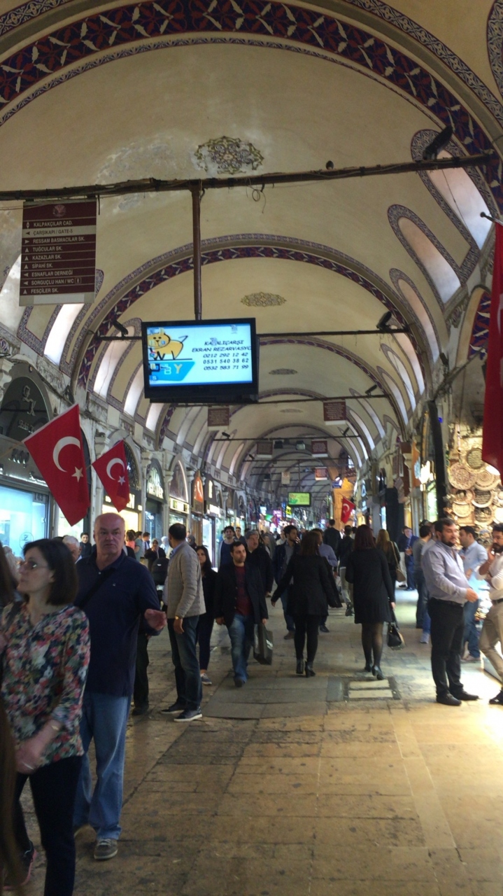 グランドバザールの最寄り駅は、トラムT1のベヤズット駅です。歩いてすぐ入り口に着きます。入り口では荷物のセキュリティーチェックがありました。バザールの中はとても広く本当に入って来た入り口がわからなくなります。店舗は似たような店舗が多いような気がします。バザールではお土産にナザールボンジューを買いましたが全然値切れ無かったです。