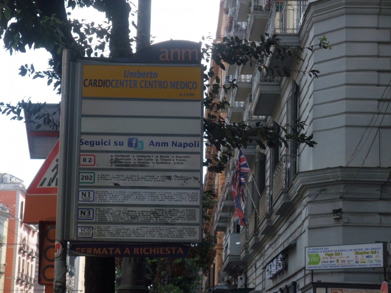 タバッキでチケットを購入し、ガリバルディ広場からヌオーヴォ城、ウンベルト1世のガッレリアをめぐる巡回バスR2を利用しました。