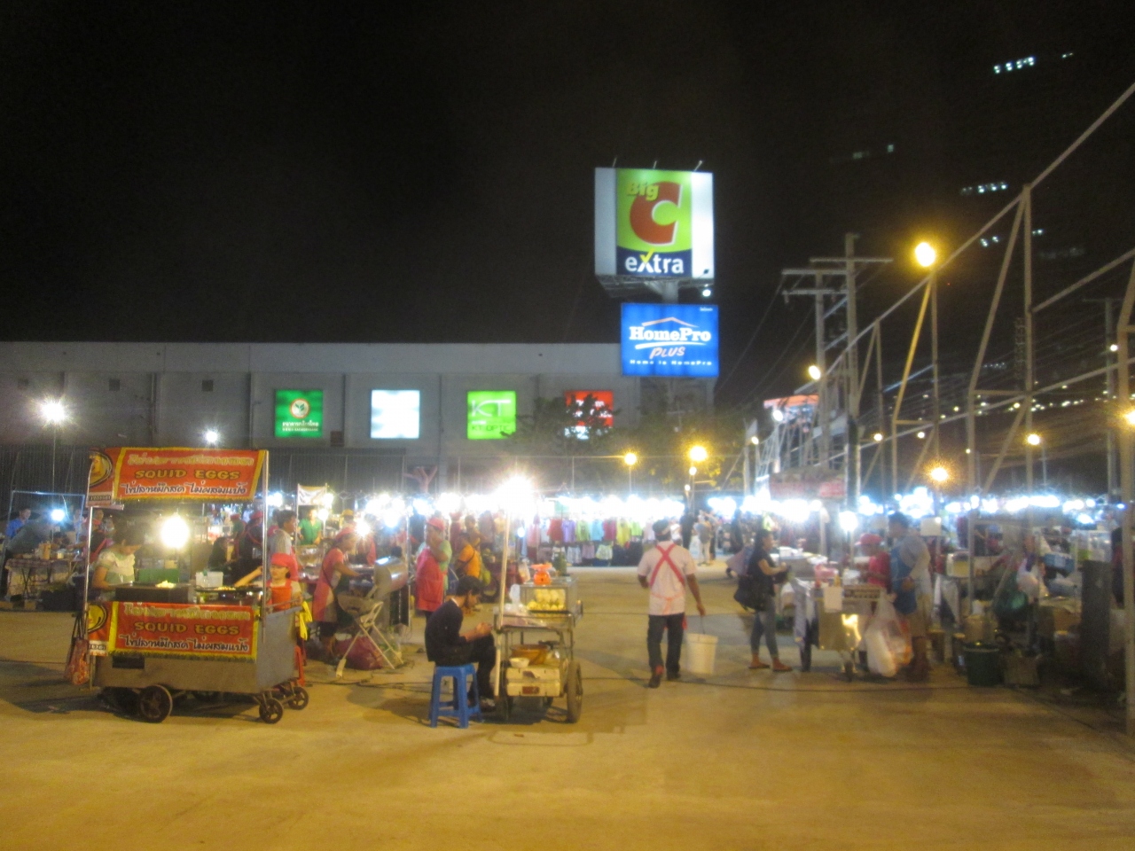 ビックC エクストラ ラチャダの前に大きい夜市が開催されていました。22時過ぎの時点でかなりのお客さんが買い物に訪問していました。定番の屋台やオープンスタイルのレストランもあり、夜遅くまで賑わっていました。