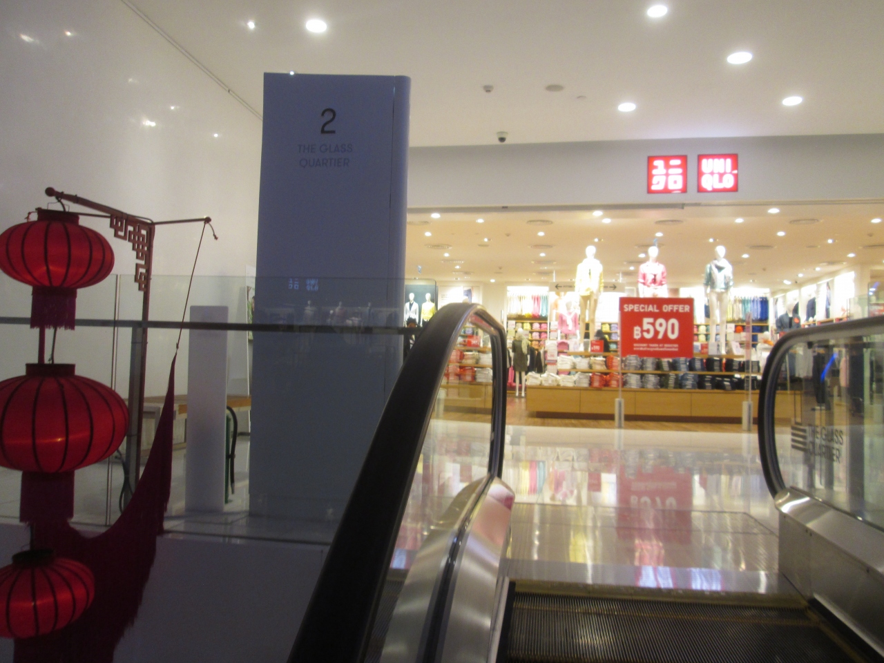 旧正月のシーズンにユニクロ (エムクオーティエ店)に訪問しました。エントランスには、赤色を基調にした旧正月を祝う飾りがありました。通常でも十分に安いですが、店内では旧正月を記念してセールが開催されていました。