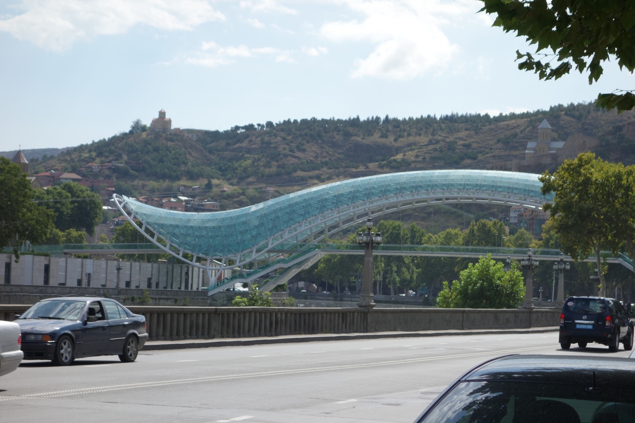 また、橋の上からは川の流れと旧市街、ナリカラ要塞が見え、橋の上でのんびり休んでいる人もいました。