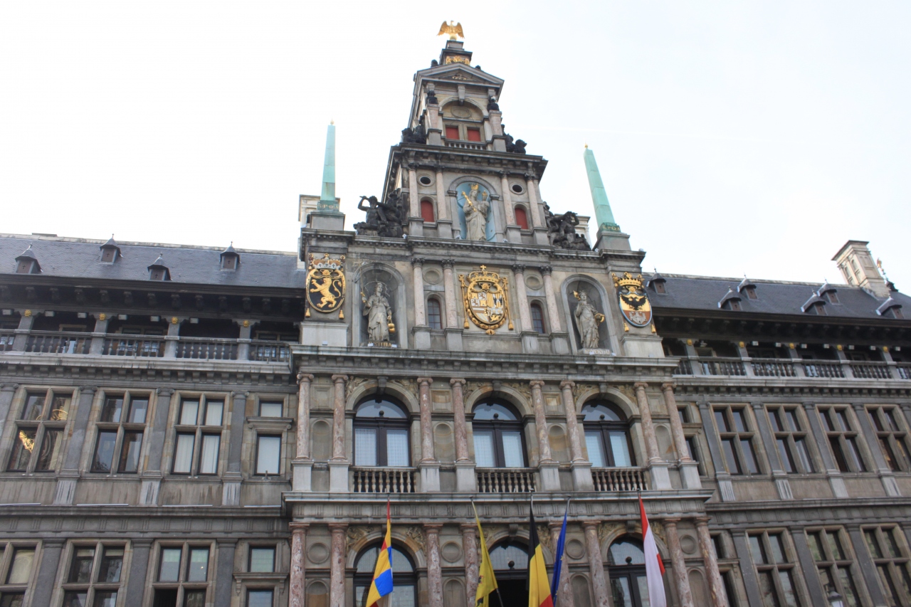 聖母大聖堂の近くにあります。中世の建物でいろんな国の国旗が掲げられていました。現在、17:00まで市庁舎の中で建設450周年の記念展示をやっていました。16:40過ぎに行ったので、中に入ることができませんでした。