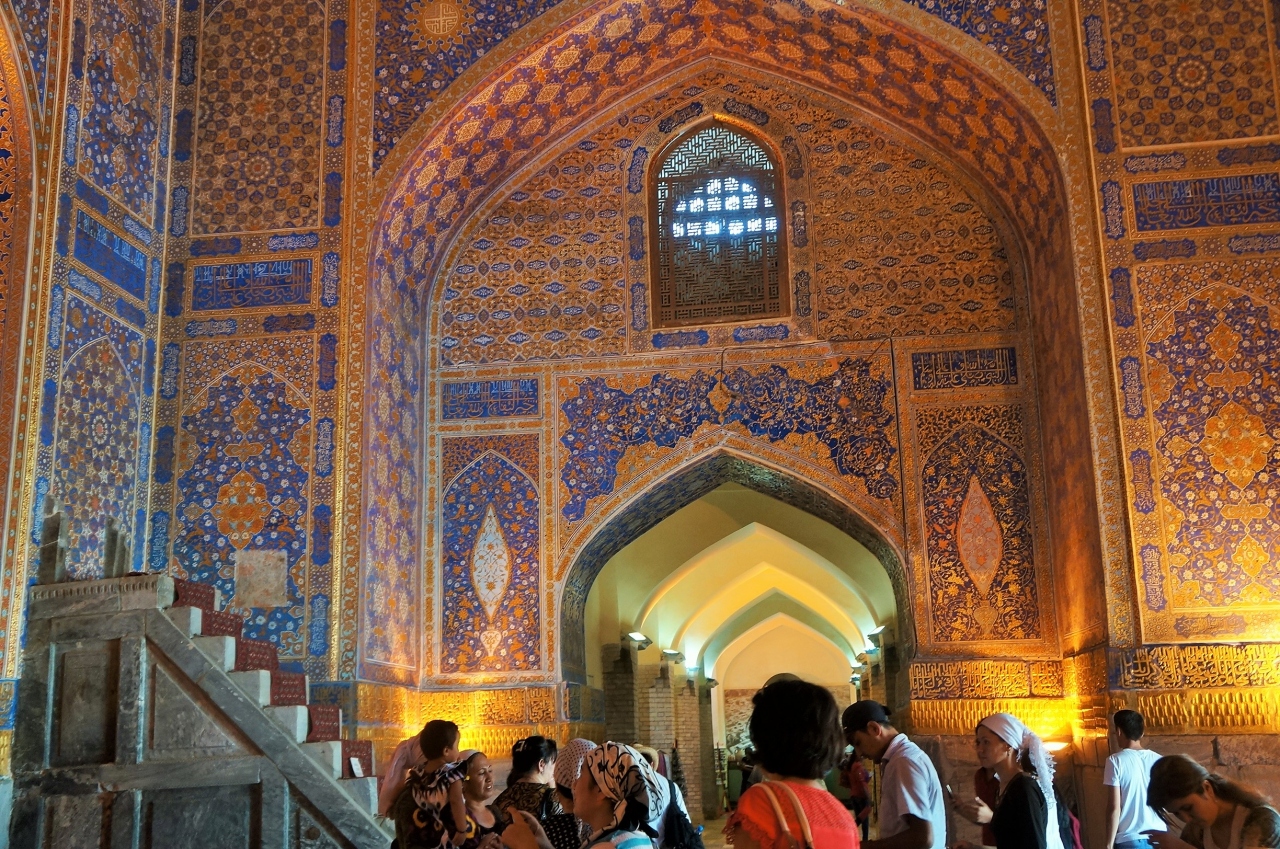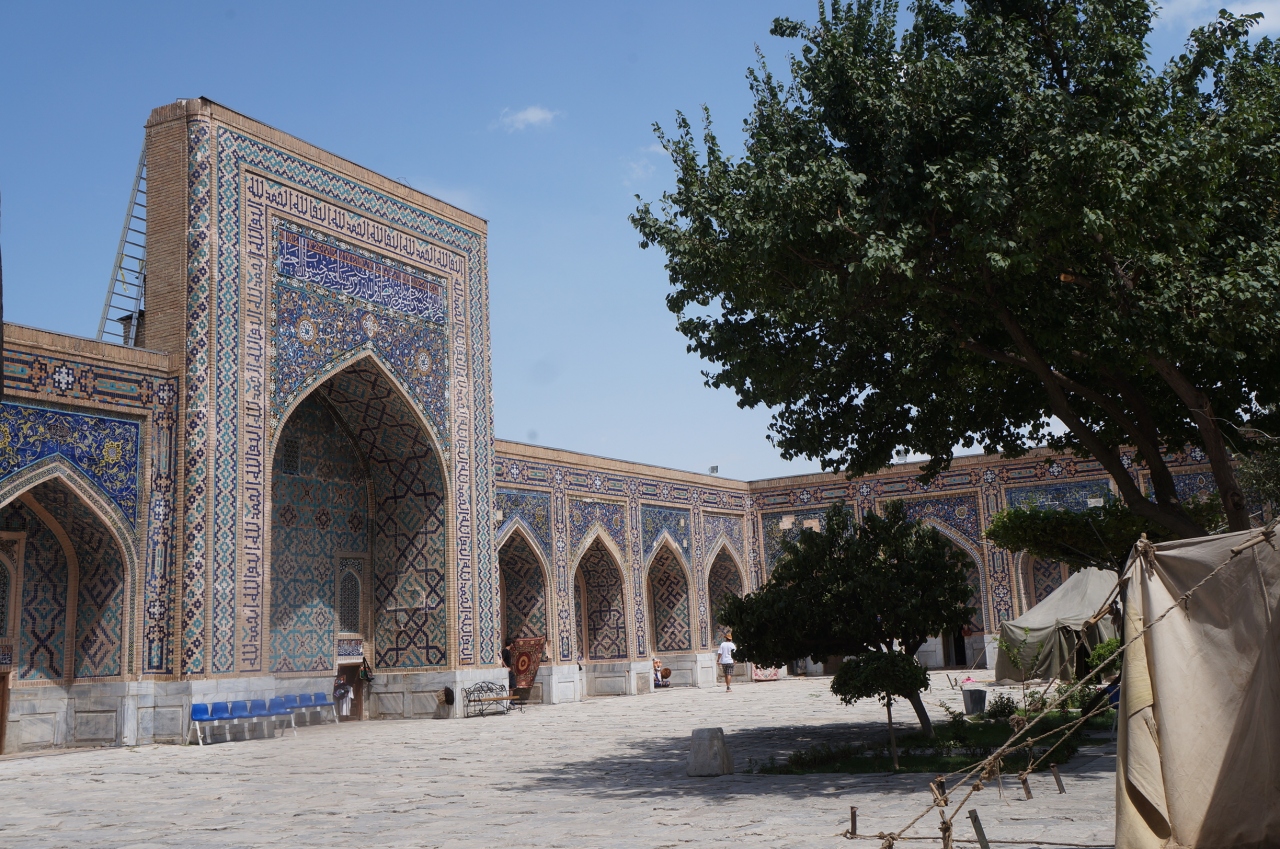 サマルカンド・レギスタン広場に並ぶ3つのメドレセのうち、展示物や内容が一番充実しているのが正面に建つこのティラカリ・メドレセ。
