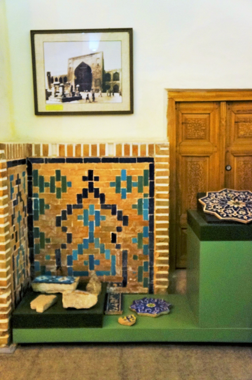 内部は昔のサマルカンドおよびレギスタン広場の様子を収めた写真や展示物があり、そちらも見ごたえがあります。ただし展示物の前に土産物屋が陣取っているため、見学していると客引きされるというなかなか無い体験にあいます笑。