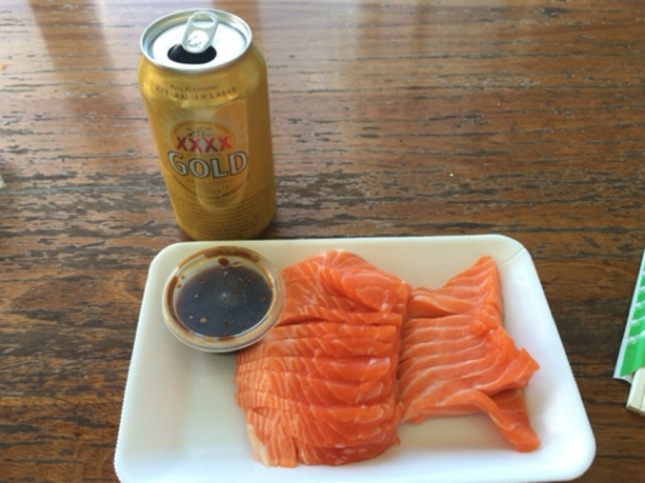 パンやワイン、ビール、白いごはんも売っていました。サーモンのお刺身がとっても美味しかったけど、1人だったので食べきれないほど。