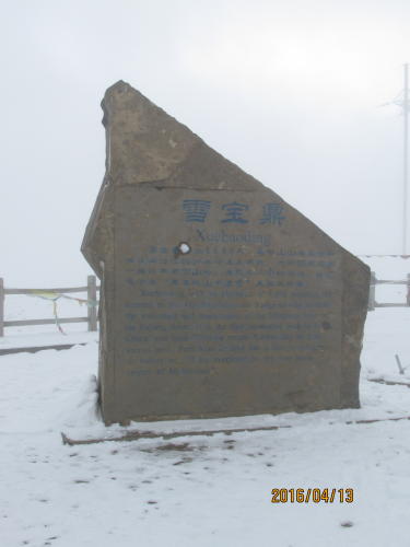 雪山梁峠に近づくに連れ路の両側に雪が見られます。雪山梁峠に着いた時には雪は降って来るし、霧なのか雲なのか白っぽくて何も見えません。めったに快晴に成らないそうですが、ネットで見たら晴れた日の雪山梁峠からの景色は大変素晴らしい物でした。特に雪宝頂(雪寶頂)は同自治州松潘県内にある、白い雪を頂くチベットの聖山で、標高は5,588mの景色は最高です。高山病が怖いのであまり動き回らずバスに戻り大人しくしていました。ここから黄龍入口3100mまで下り、昼食を食べます。