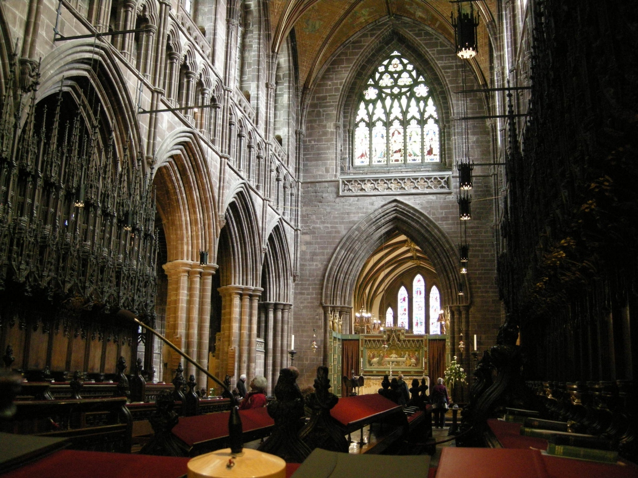 チェスターの中心の大聖堂です。10世紀にベネディクト派修道院として設立され、数度にわたり増改築がなされた。そのためノルマン様式からネオゴシック様式までさまざまな時代の様式が混在しているそうです。内部には無料で入れます。素晴らしい雰囲気のカフェやきれいな中庭などもあります。チェスターを訪れたら必ず観光したいオススメスポットです。