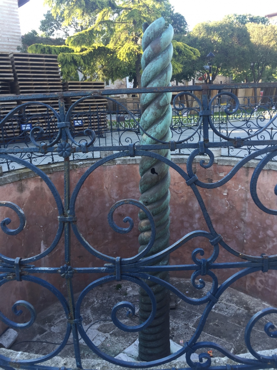 この場所はトラムT1スルタンアフメット駅からすぐ近くでヒポドゥロームにあります。オベリスの隣りにあります。最初はこのネジネジ何だと思っていましたが、先端の折れた所には蛇の頭があったみたいです。蛇の頭は考古学博物館にあります。