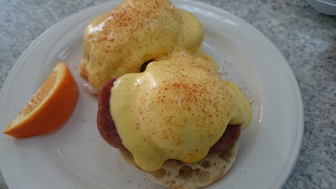 「グアムプラザホテル」から歩いて10分の「クラックド・エッグ」に朝食に行きました。