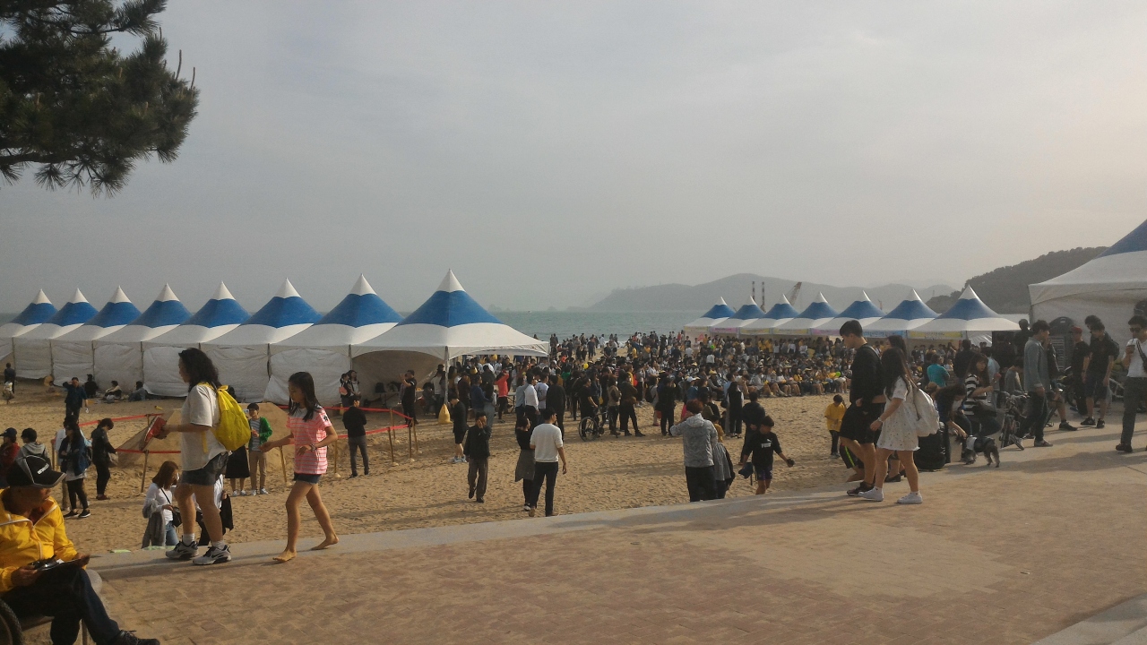 お天気がよければ青いきれいな海がみれるはずだったのですが、PMやら黄砂で景色は思ったほどよくなかったです。風もあったので、砂埃もひどく。連休で催し物をしていたのは珍しくておもしろかったです。景色をみるだけなら冬のほうがいいかな。