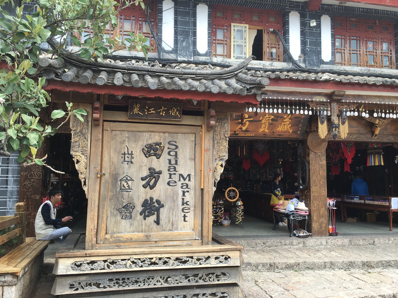 麗江古城のへそのようなところです。街路が集まり、少し広く広場になっていて、レストランや土産物屋さんに、観光客が集まっています。街路の関係で、散策の目印になりますが、古城の雰囲気はなく、夜は騒がしかったです。