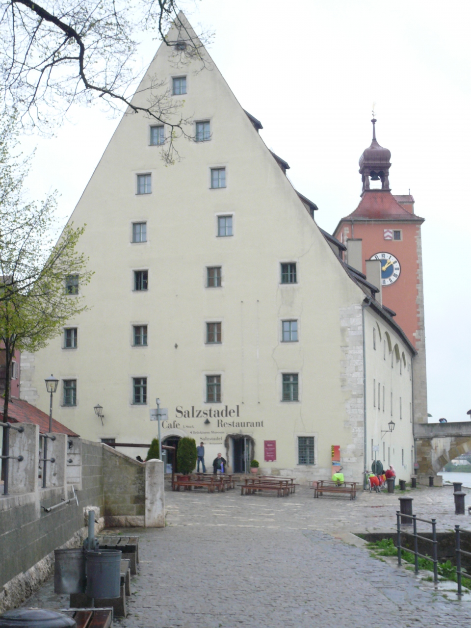 ドナウに架かる石橋(1135~46年の建設・プラハのカール橋などの原型になった)に向かった。石橋そばに昔は塩の倉庫があり、今はカフェ・レストランになっている。